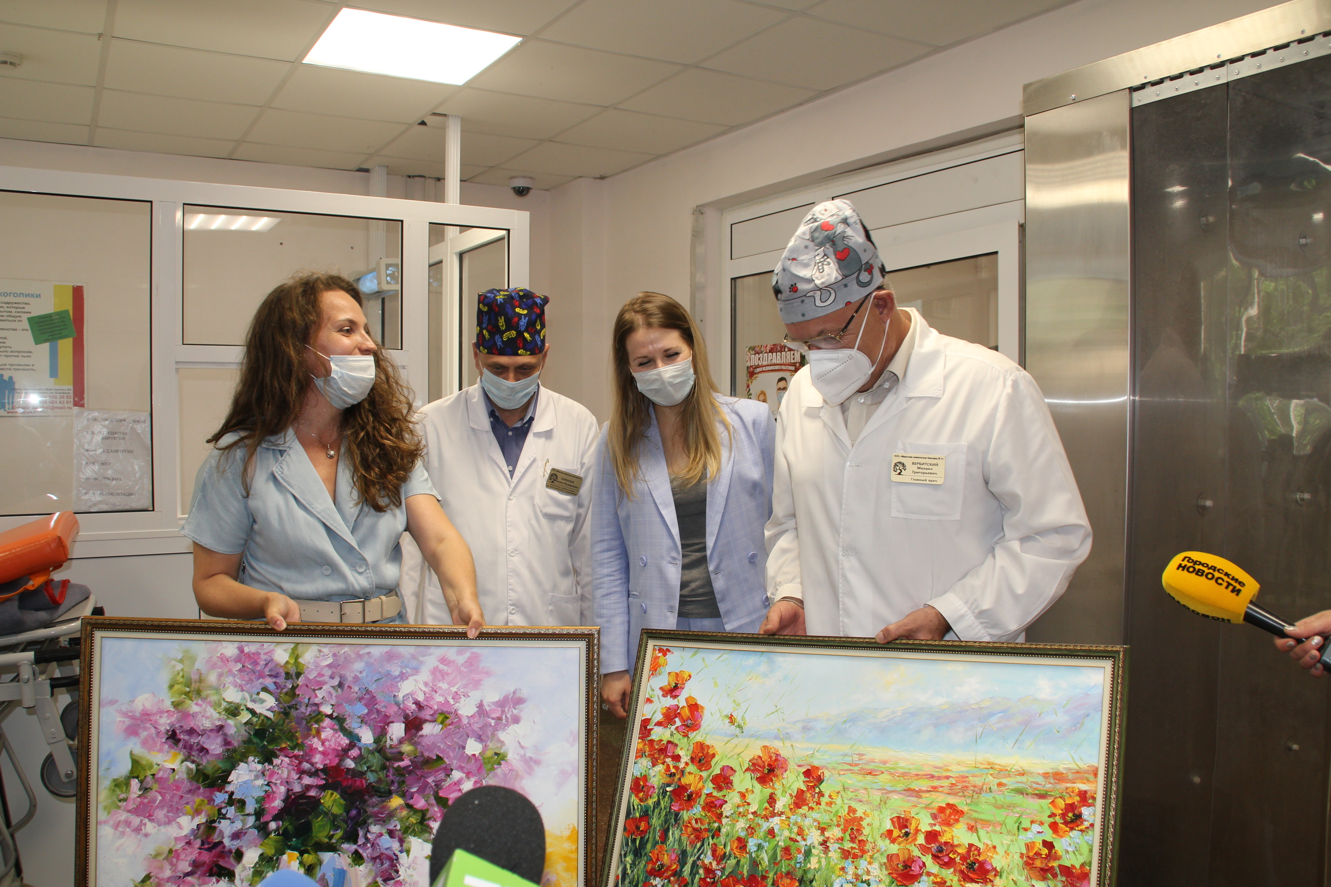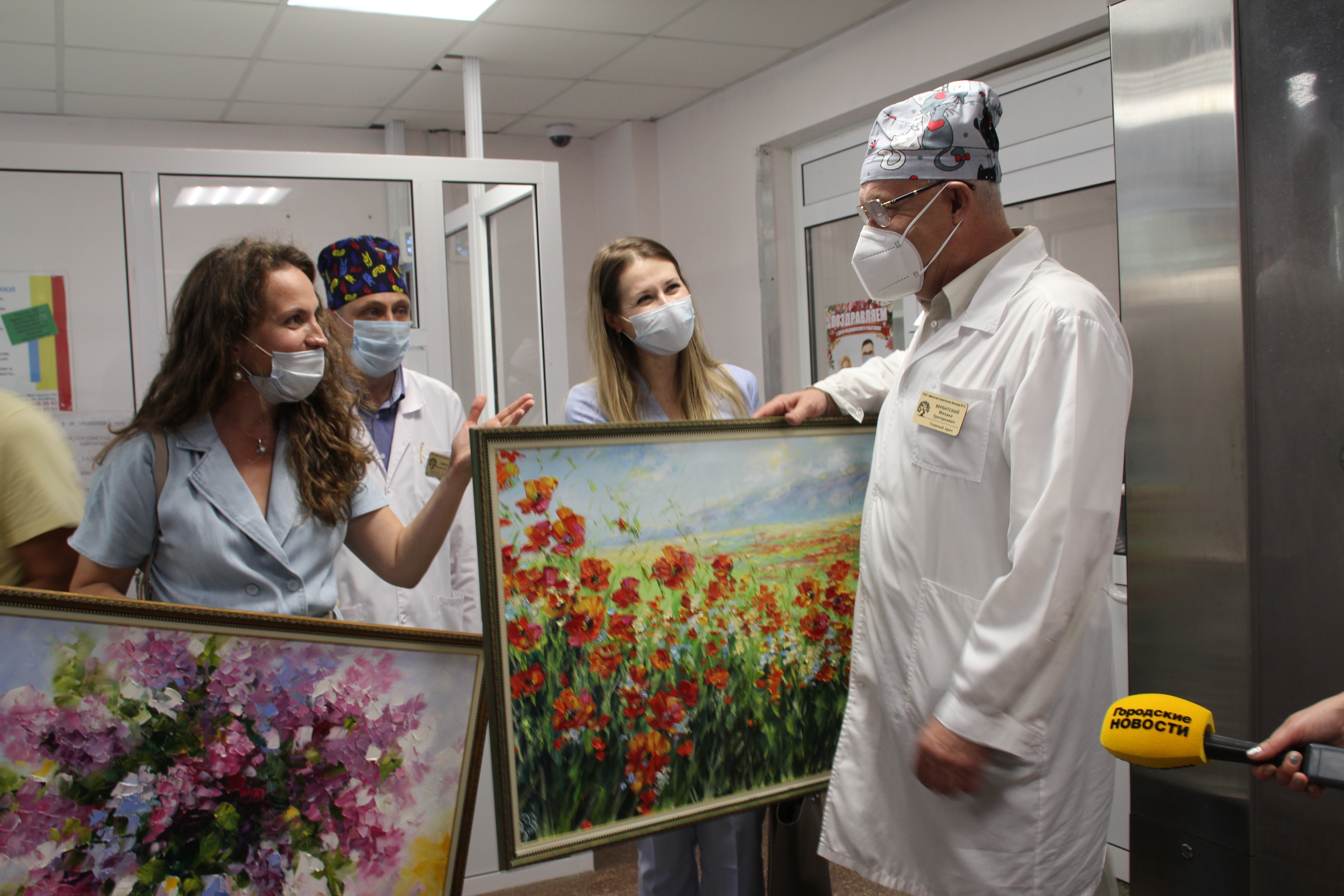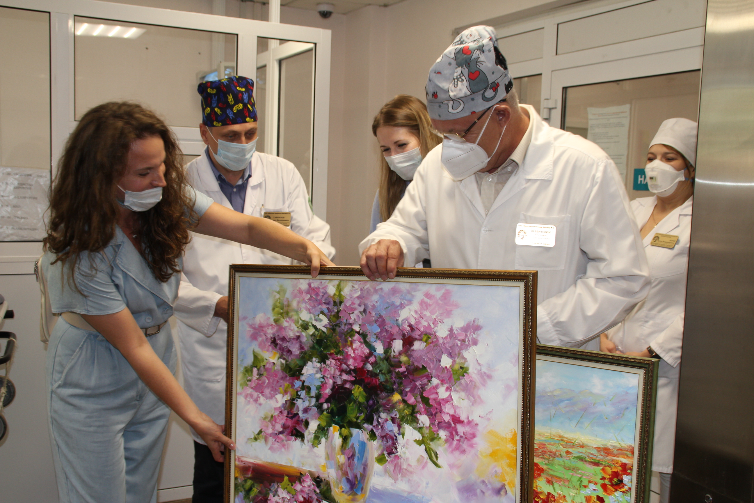 Михаил Григорьевич с коллегами-врачами с большим удовольствием принял подарки, крепко обнял художницу и поблагодарил за столь приятную неожиданность: